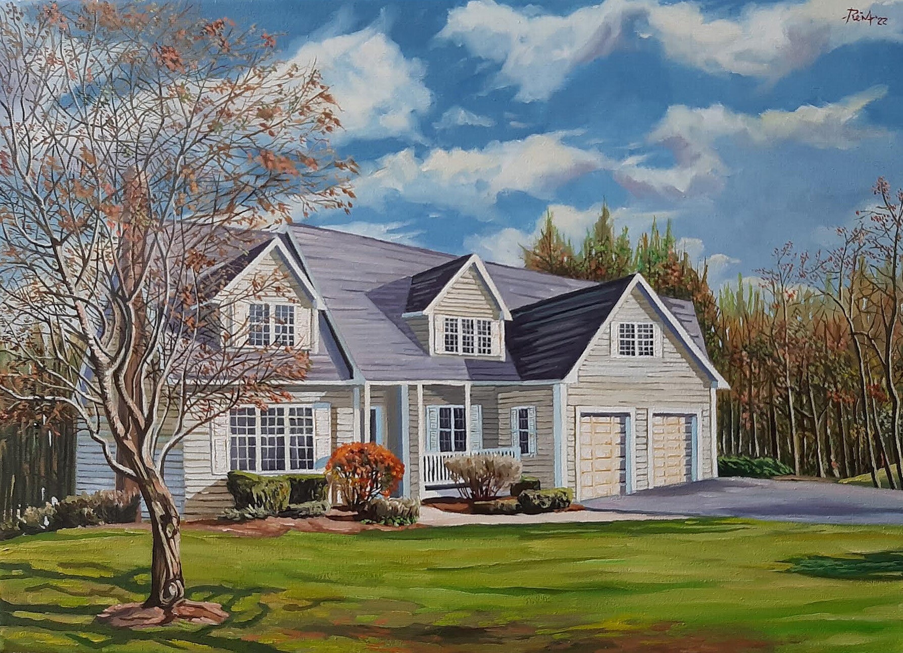 Solo pretendia plasmar la casa de mis hijos (mi hija y su marido) que viven en un pueblo cercano a Boston en un luminoso dia de otoño, rodeado de una privilegiada naturaleza.