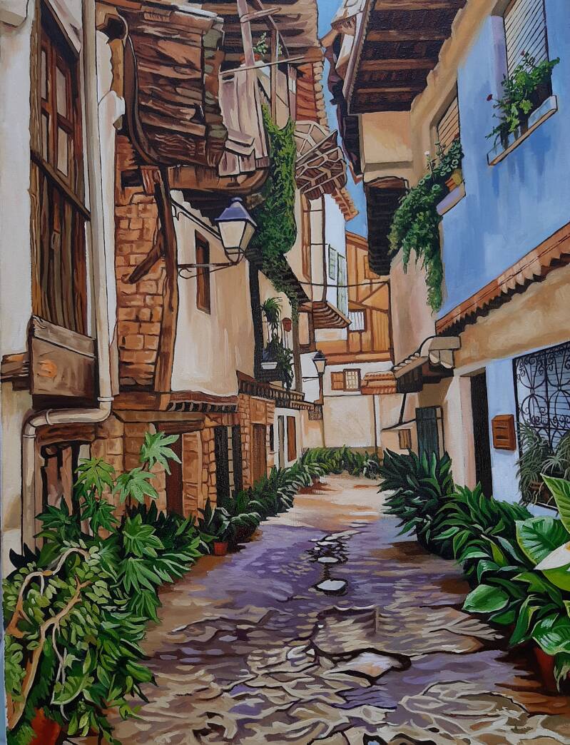 Mi cuñado me envió una foto de este singular Rincón, sabedor de mis inclinaciones pictóricas y la verdad, me cautivo el colorido del entorno, las rusticas construcciones, el irregular suelo de la calle, así como esa fila de macetas que ceremoniosamente da la bienvenida al visitante.